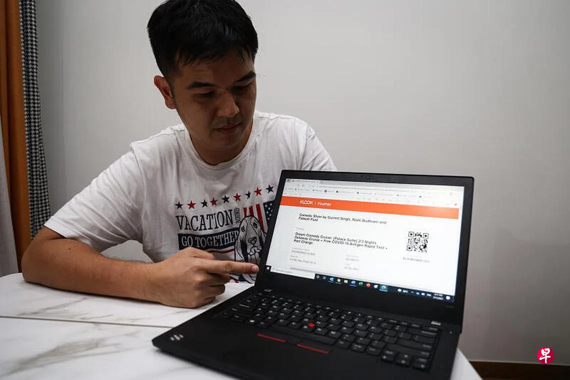 黄春胜(38岁,营销业)与妻子沈秀姿(36岁,营销员)告诉《联合晚报》,为了庆祝结婚周年,同时带沈秀姿的父母一起出游,在9月底通过旅游平台客路(Klook)购买星梦邮轮的配套,两人配套的收费是1340元,四人同行要价2680元。