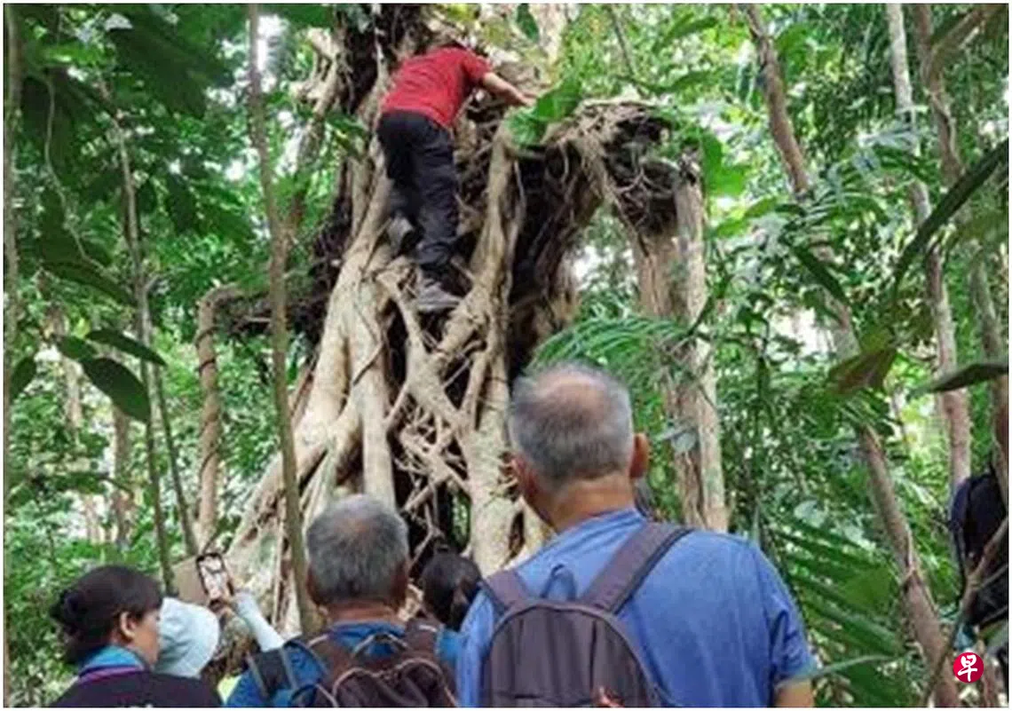 女网友Puji Soekarno在11月14日,于本地徒步爱好者面簿群组贴文,指她到杜佛森林探索时,目睹一大群人排队轮流爬一棵貌似榕树的大树。