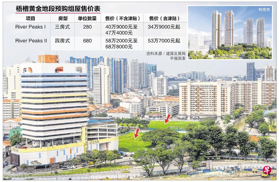 位于梧槽的首个黄金地段预购组屋正式推出,四房式单位不含津贴的售价从58万2000元起。屋主往后转售时,须将转售价或估价的6%归还建屋发展局,视何者为高。