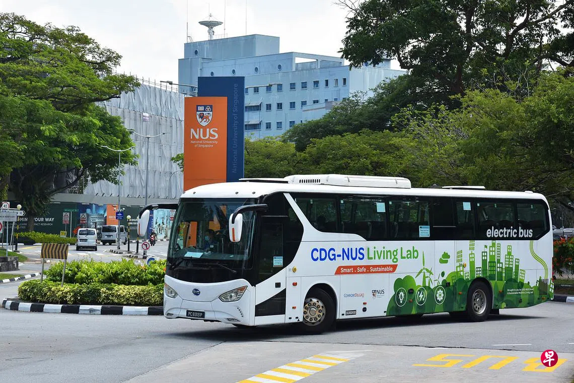 明年7月开始,新加坡国立大学的接驳巴士将全面改用电动巴士。