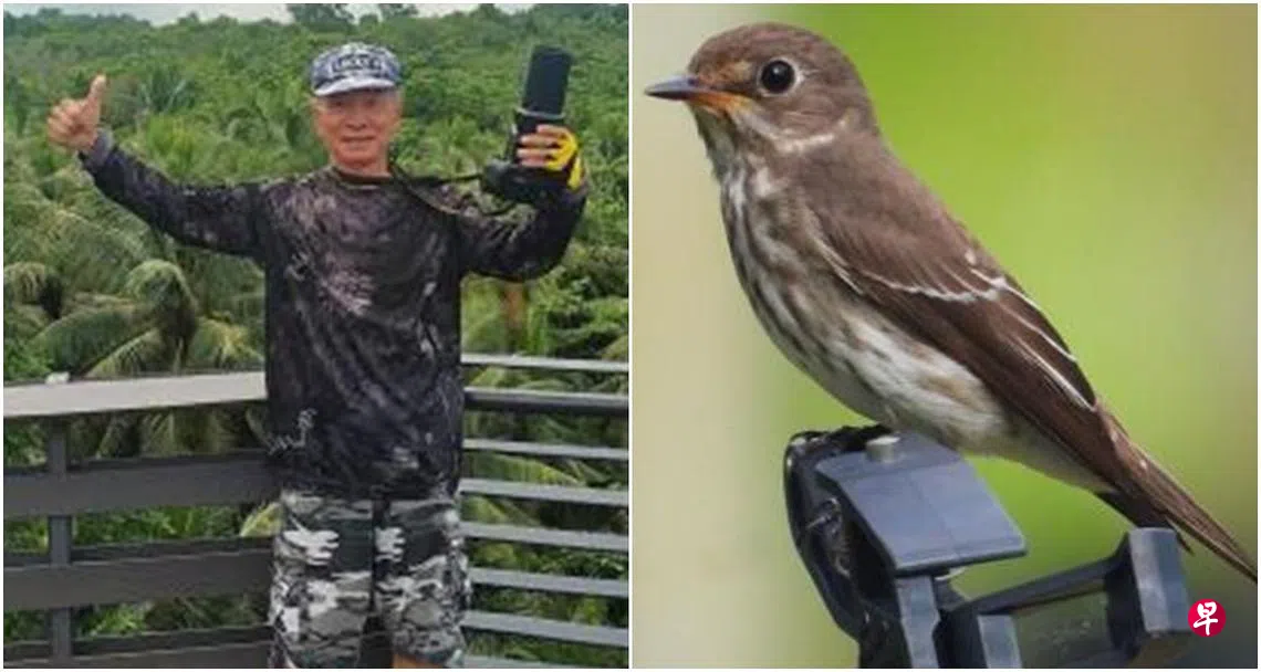 退休阿叔在郊外拍到一只褐色小鸟,岂料上载到社交平台后竟被告知,这是在本地绝迹超过30年的罕见候鸟灰斑鹟,让他喜出望外,直言好像中头奖般开心。