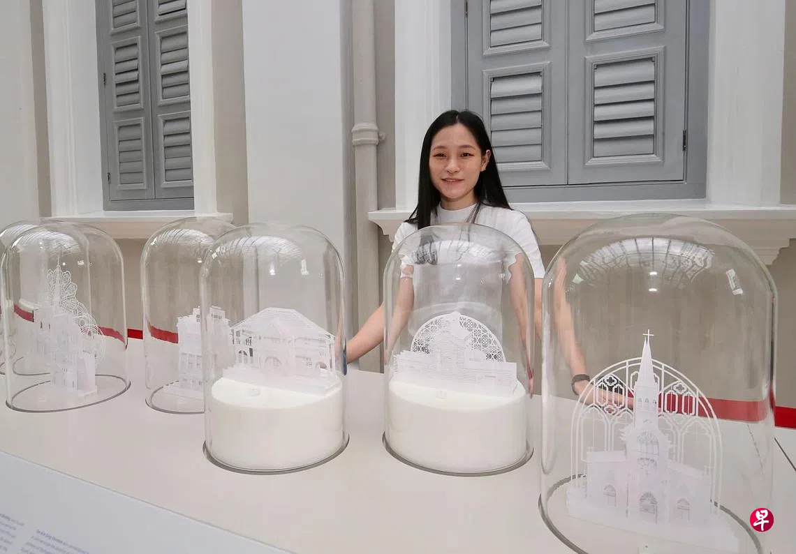 参观国家博物馆“庆祝新加坡保存古迹与遗址金禧之旅”特展的公众,相信不会错过艺术家杨奕佳(31岁)的纸雕建筑。