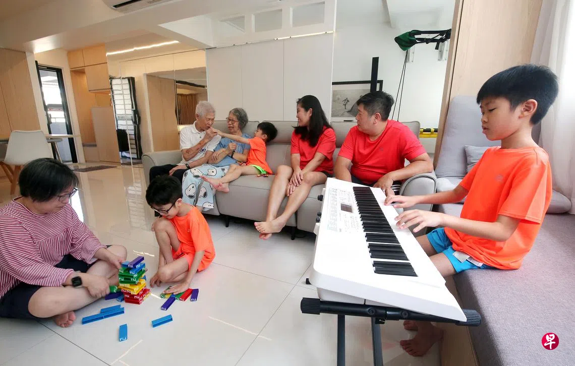昨天政府放宽防疫措施,允许每户家庭一天接待最多五名访客,居家办公的邓维铭就邀请了父母和姐姐做客,全家人难得欢聚一堂聊天,其乐融融。