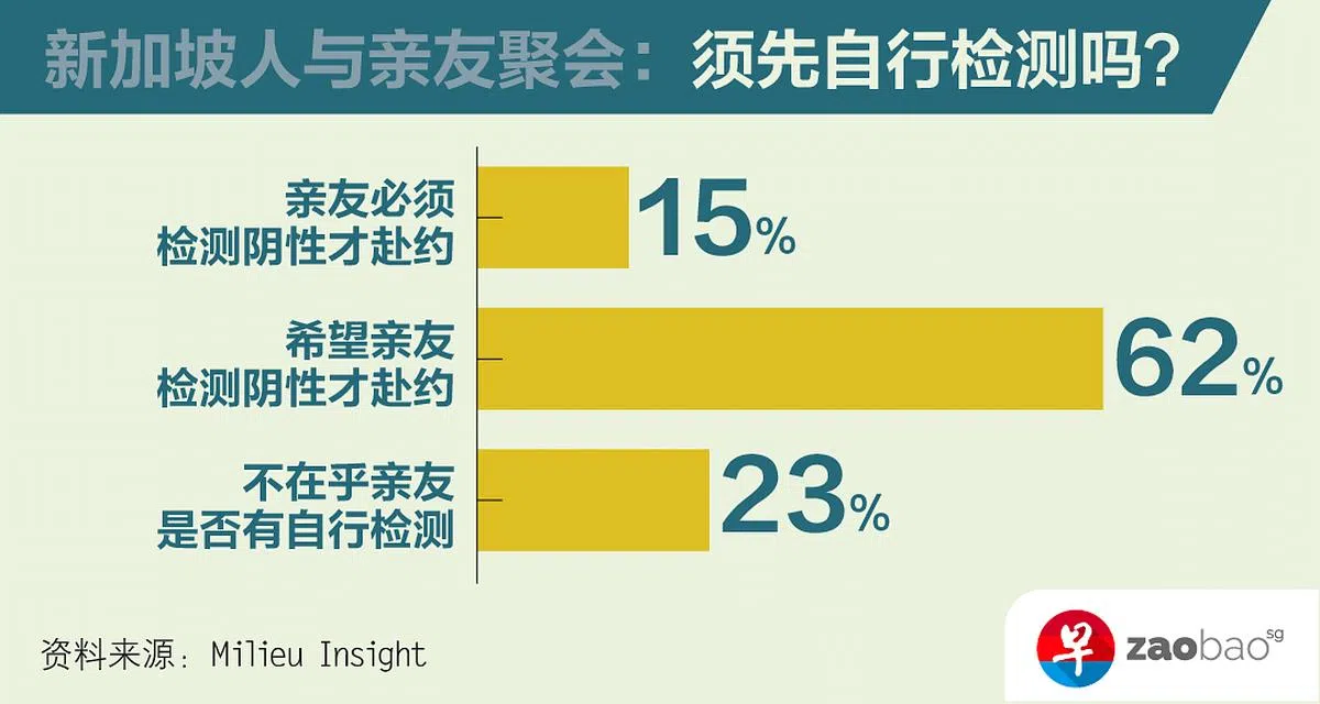 另外,有高达77%的新加坡人,希望或要求亲友能先自行检测才赴约。这比其他五国都来得低:马来西亚(95%)、越南(92%)、泰国(91%)、菲律宾(89%)和印尼(87%)。