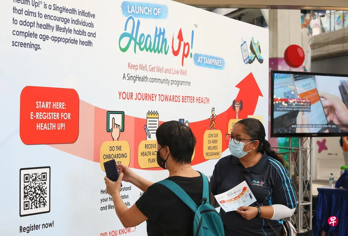 “健康向上!”(Health Up!)是由新保集团诊所(SingHealth Polyclinics)和樟宜综合医院、保健促进局、淡滨尼集选区,以及新加坡体育理事会(Sport Singapore)等社区伙伴在淡滨尼联合推出的健康试点计划,让250名40岁以上的居民率先参与。