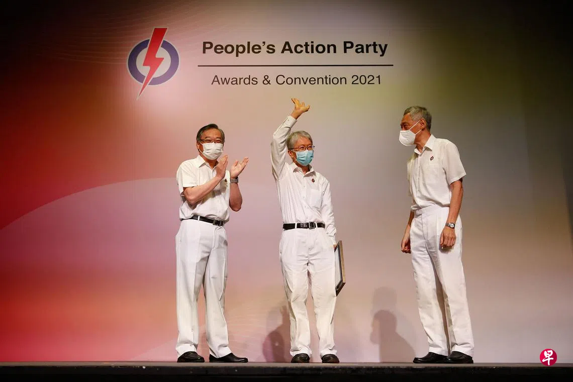 为肯定顾蔡矶对人民行动党的尽心服务和杰出贡献,行动党向他颁发功绩奖章。他昨天在行动党大会上,从党秘书长李显龙总理和党主席、贸工部长颜金勇手中接过奖章。