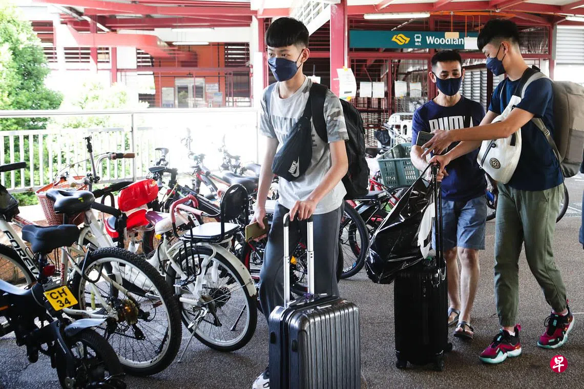 下午1时30分左右,两个儿子在完成ART检测后,拖着行李走出兀兰巴士临时转换站,和父亲团聚。
