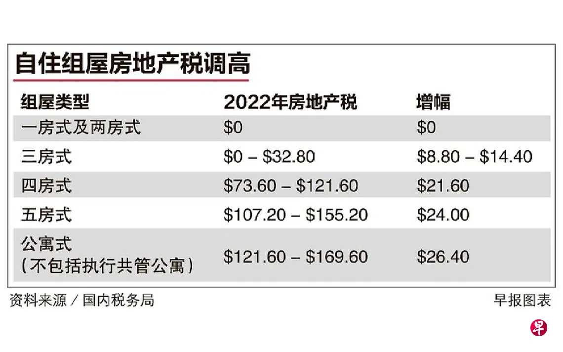 组屋年值调高,多数三房式组屋和更大型组屋的房地产税明年相应增加,自住屋主须多付约8元至26元的房地产税。这将是五年来组屋年值和房地产税第一次调整。
