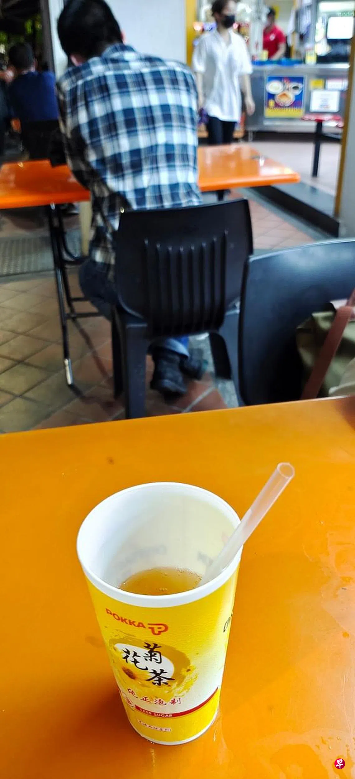 黄色塑料杯印有菊花茶的图案与标志,再配上吸管,让人觉得这就是一杯普通的“菊花茶”饮料,很难会联想到杯里其实暗藏乾坤。