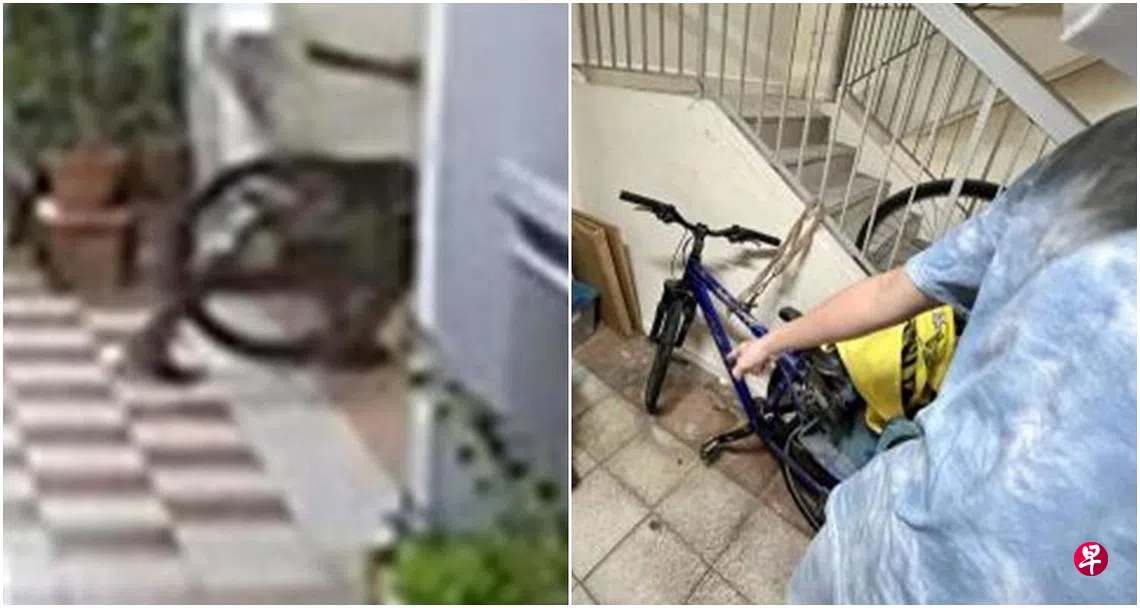 脚踏车锁在楼梯间,清晨出门却只剩车架不见轮,少年气急败坏报警处理后,突然想起邻居有电眼对准楼梯口,查看电眼画面,认出涉案男生就住附近,于是带着警察找上门,找回两个失窃的脚踏车轮子。
