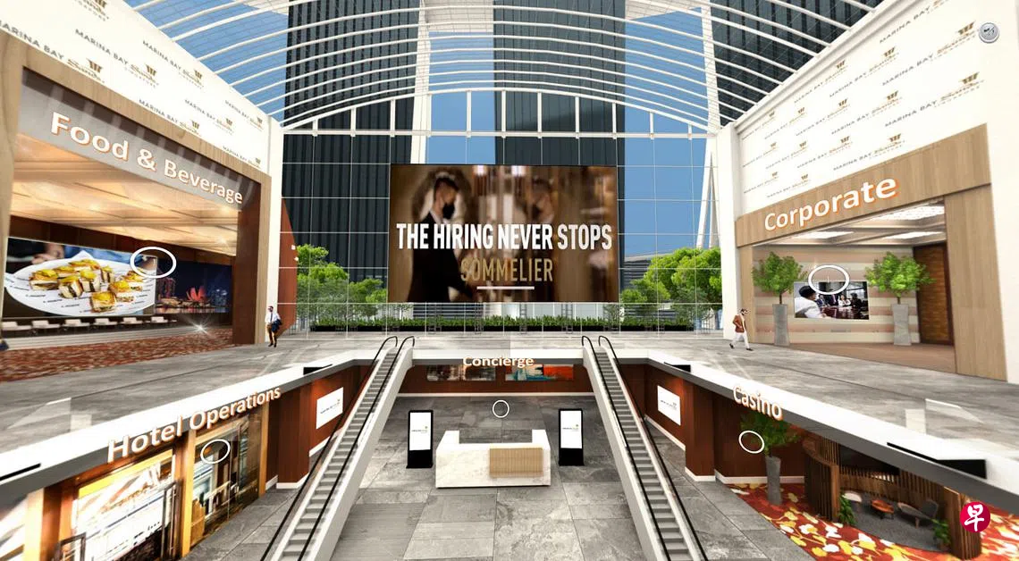 滨海湾金沙首次举办虚拟职业展,提供逾千个职位空缺。求职者可以通过虚拟平台的线上实时交谈等互动功能,与招聘部门交流,了解各个职位的申请要求。