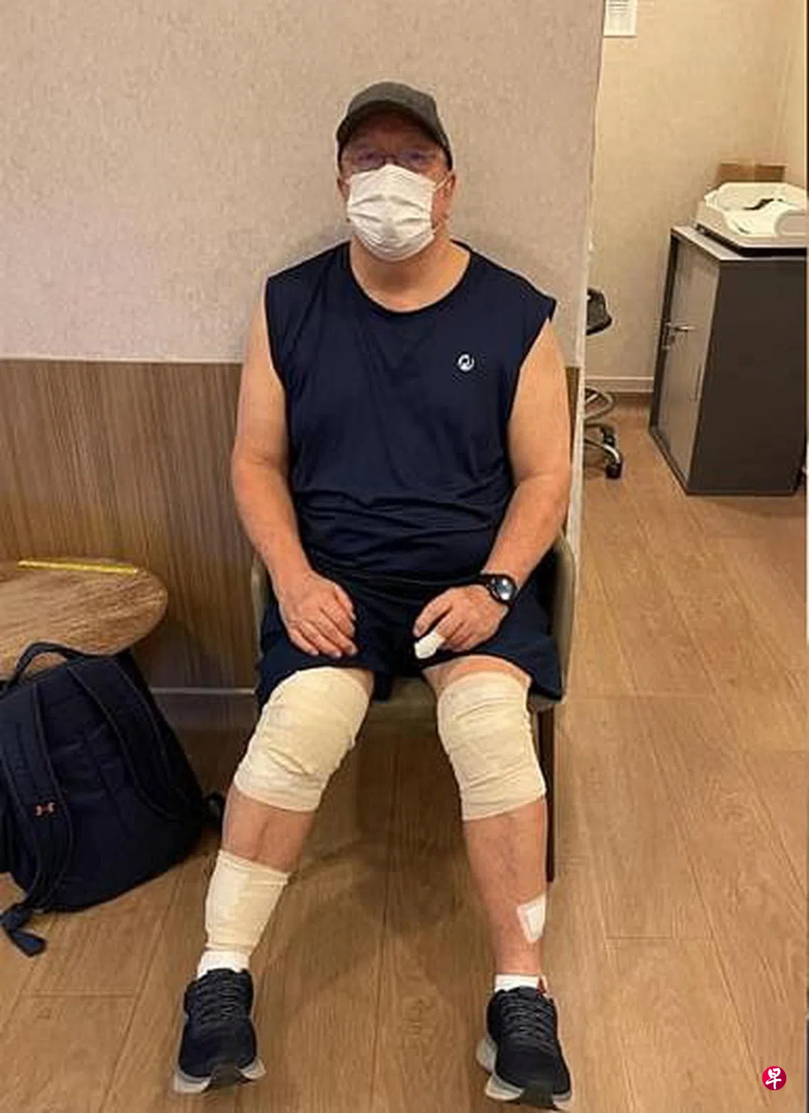 洋汉到植物园内晨运,岂料遭20多只水獭“围攻”,短短10秒内被咬26次,伤痕累累。