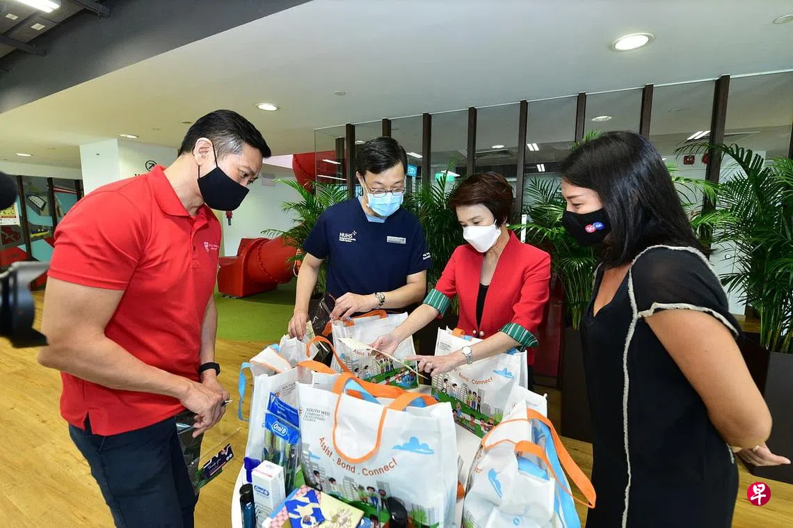 西南社理会向5000医护人员分发关怀礼包订户赠阅文章西南区市长、贸工部兼文化、社区及青年部政务部长刘燕玲(右二)和黄廷方综合医院总裁郭立新医生(左二)阅读中学生为前线医护人员写下的祝福卡片。(西南社区发展理事会提供)尹云芳 报道wunyf@sph.com.sg本地西部三家医院的5000名医护人员将收到由西南社区发展理事会及伙伴分发的关怀礼包,以答谢他们在疫情期间的付出。这些含有保健品和手工卡片的礼包总值35万元。医护人员上一篇国家图书馆展出亚洲古地图 让公众从不同角度了解历史下一篇“盼”领头 字述一年投选活动明晚截止购买此文章