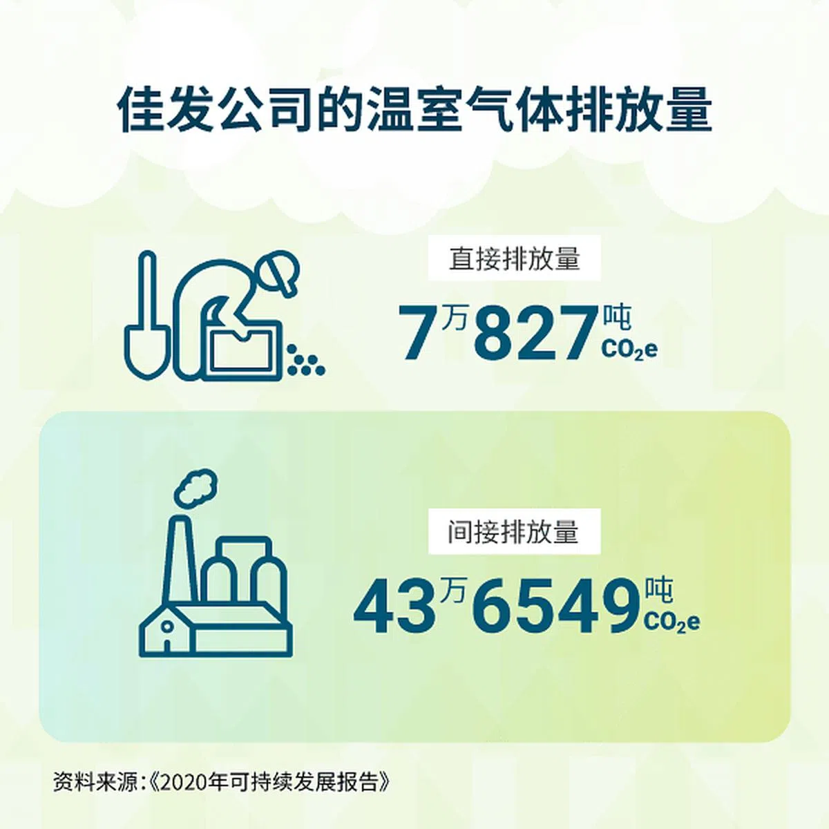 佳发公司自2017年起发表可持续发展报告,所涵盖的环境指标相当全面,包括能源用量、温室气体排放量、用水量和废物量。它也成立了由首席执行官和首席财务官领导的可持续委员会,以及由各个市场代表组成的附属委员会,上下齐心推动可持续发展。