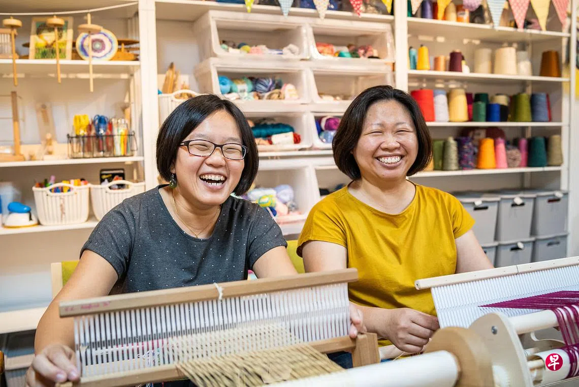当艺坊创办人许真瑱(图左,39岁)和吴惠莲(右,44岁)熟练地示范编织技巧时,你或许很难想象她们原是中学教师,教的科目不是美术,而是数学和化学。