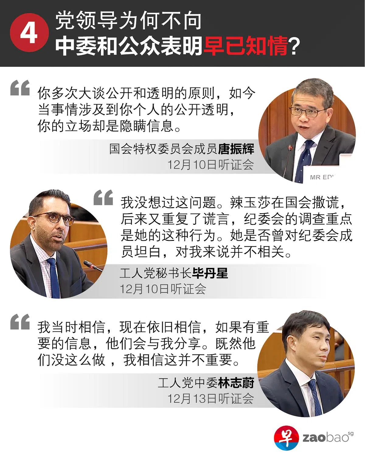 辣玉莎事件4大交锋点 各方立场一次看叶俊颖发布/2021年12月17日 18:14小标准中大国会特权委员会召开会议至今,已传召八名证人,听证长达28小时。zaobao.sg为你整理听证会上出现激烈交锋的四大问题和各方回应。 国会特权委员会毕丹星工人党林志蔚辣玉莎上一篇性贿移民官员 中国女坐牢25周罚8000元下一篇试点计划解决找不到室友难题 社服机构助配对单身者租屋