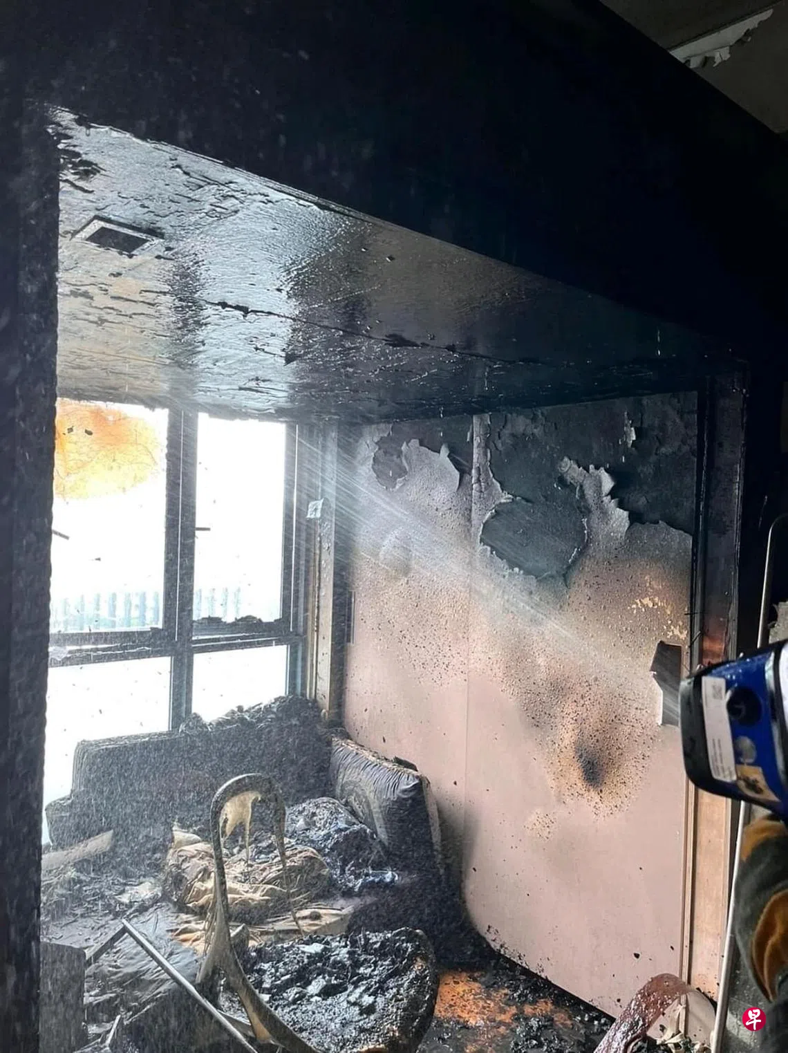 这名母亲尝试灭火时被轻微烧伤,她过后因吸入浓烟和烧伤被送往新加坡中央医院救治。