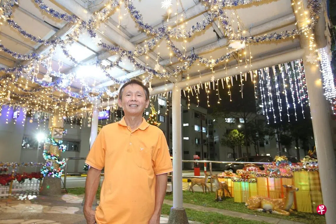 十多年来,陈孔达(61岁,家具店老板)逢年过节都会为兀兰13街第178座及第179座组屋装饰一番,无论是农历新年、开斋节、屠妖节还是圣诞节都少不了他用心的布置。