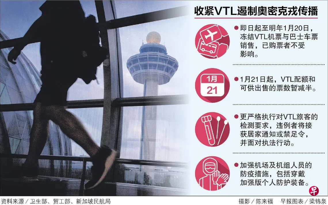 航空方面,新加坡民航局指出,1月21日起飞往我国的VTL机票配额也会减半。根据现有安排,当局每天允许最多1万5000名VTL旅客入境我国。