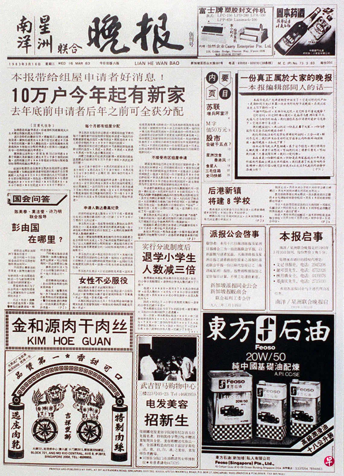 《联合早报》与《联合晚报》总编辑吴新迪说,通信科技改变了读者阅报的习惯,晚报在创刊38年之后完成了历史交付的使命。