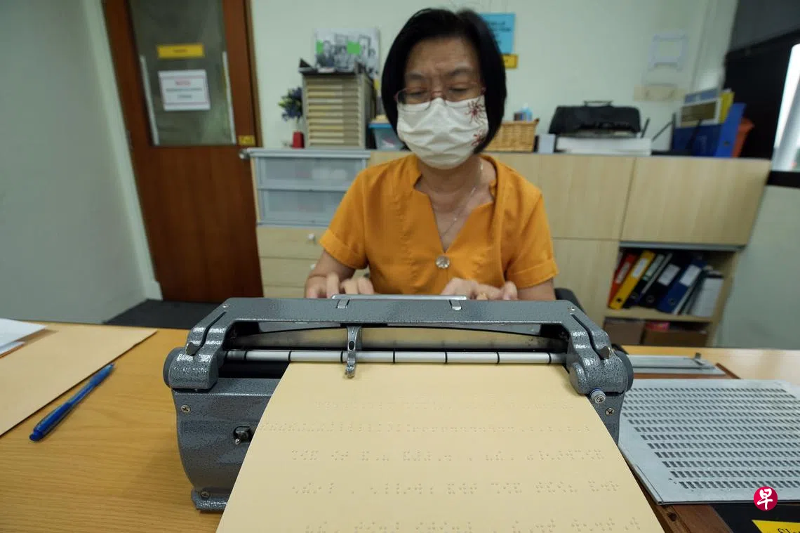 凸字团队为失明学生“翻译”课本订户赠阅文章在凸字制作中心工作40多年的黄秀琴,之前使用这类特别的打字机打出凸字。凸字制作中心已改用电脑软件“翻译”凸字,黄秀琴如今的工作就是用凸点画出科学器材图解、数学图表、地理和生物学插图等。(谢智扬摄)陈昱嘉 报道yujiatan@sph.com.sg位于新加坡视障人士协会的凸字制作中心已有60多年历史,是本地唯一将中学教材改写成凸字的中心,还细心用凸点画出无法用文字表达的图表和插图,让有视觉障碍的中学生拥有平等的学习机会。上一篇七成与瘦身或壮阳有关 三年来54款产品验出违禁杂物下一篇诺雅初院工地狭小挑战多 工程师用创意建造获嘉奖购买此文章