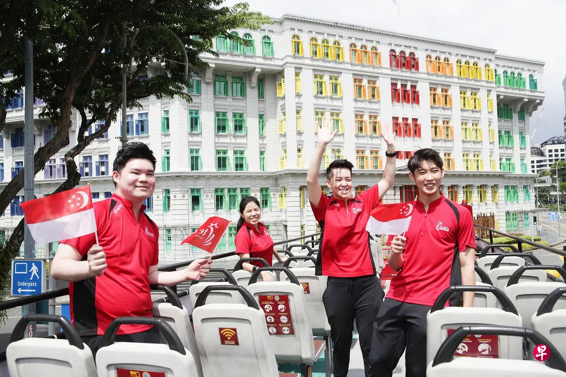 刚刚在羽毛球世锦赛载誉归来的骆建佑连同叶品秀、叶浚惟和黄琳芷,昨天(12月26日)乘搭敞篷巴士巡游市区,欢庆过去这一年所取得的胜利,答谢支持者。