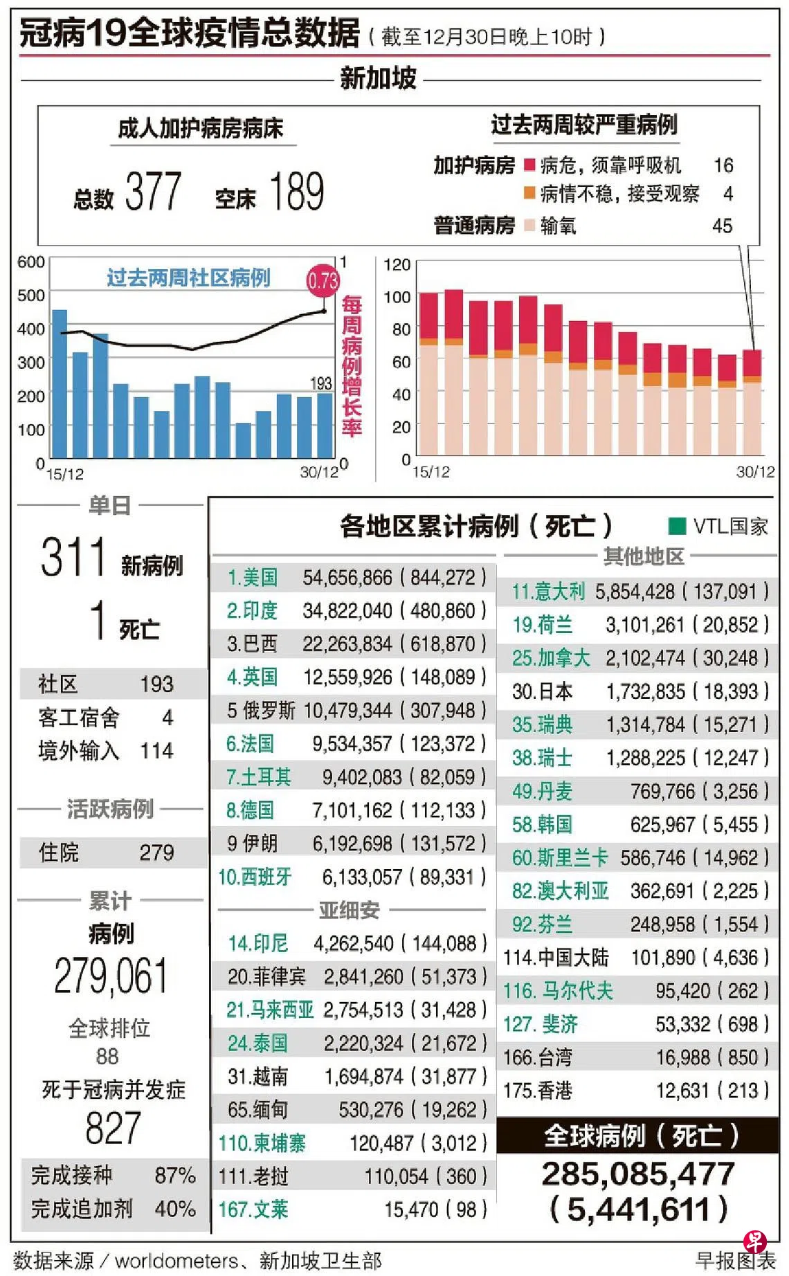 我国昨天(12月30日)新增311起冠病确诊病例,输入病例占114起,连续五天过百,但增幅较过去三天有所放缓。住院病患减至279人,是五个多月以来首次回落至300人以下。