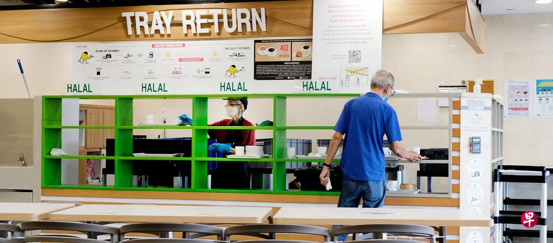 两个月逾7000人未归还碗盘被提醒 明天起在咖啡店和食阁展开执法订户赠阅文章在山乐坊Kopitiam食阁从事清洁工作的蒙爱金(左)反映,食客清理桌面和归还餐具的意识在过去几个月已经改善很多。(曾坤顺摄)咖啡店和食阁的执法行动从明年1月1日开始。全岛1120家咖啡店与220家食阁中,已有99.6%的业者安装所需装置,一些因空间所限无法设置回收架的业者则使用大桶和大盆解决问题。卢凌之 报道lulz@sph.com.sg咖啡店食阁归还托盘新加坡食品局上一篇康乐通道等三路段改为人行道首日 多数公众不知情 有车到了才发现此路不通下一篇1月1日起 逃避临检路障者将面对更严重刑罚购买此文章