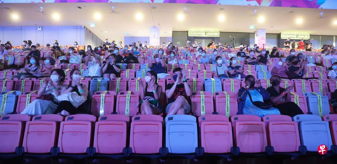 这是自去年8月我国放宽大型活动的防疫条例后,淡滨尼天地举办的第二场千人演唱会。观众可以自行选择座位,但不能更换座位、与他人交谈或是随意走动。