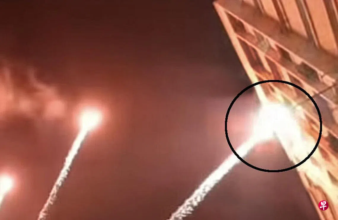 乌美组屋区燃放烟火迎接新年,烟花“脱轨”喷射组屋11层楼外墙,有人险些被击中,失声尖叫。人民协会表示进行调查中。