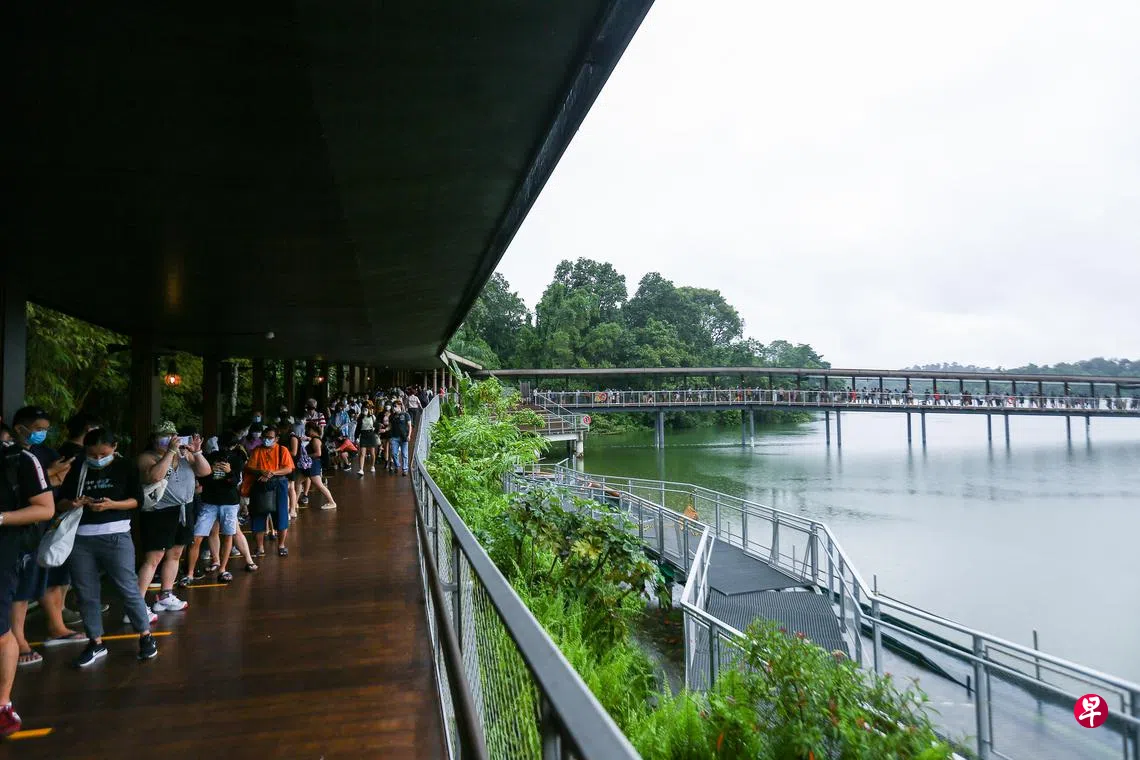 蕾丽莲(40岁,工程师)表示在电视上看到了大熊猫宝宝叻叻的可爱模样,因此昨天赶在学校开学前带两个女儿到河川生态园看看。“本以为下雨天没那么多人,但没想到排队的人这么多。”