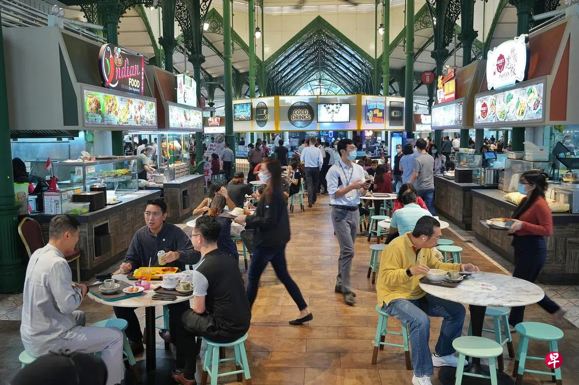 随着更多员工回返办公室工作,在用餐高峰时段,位于市区克罗士街的马吉街临时熟食中心人潮汹涌。不仅三分之一的摊位大排长龙,部分摊位等候时间长达10分钟,堂食顾客更是很难找到座位。许多人纷纷用纸巾、雨伞等物品来占位。
