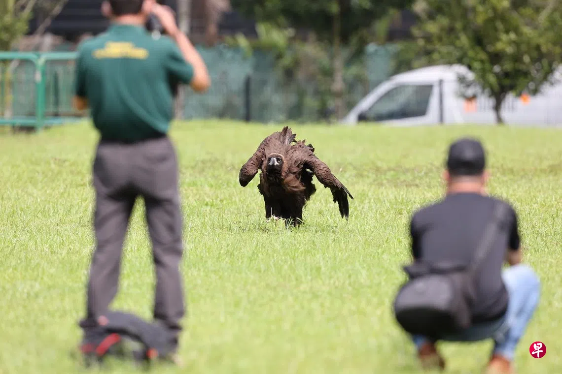 这只在我国难得一见的秃鹫,相信是因为不堪长途飞行,疲累过度而于上周三(12月29日)在新加坡植物园附近“迫降”,自上个月30日以来便一直由裕廊飞禽公园鸟类医院里的兽医团队细心照料。兽医团队在检查过秃鹫,确认其身体状况已经恢复后,于前天(1月4日)早上把它带到一空旷处第一次放飞,但它一直飞不起来,工作人员只好将它带回观察。