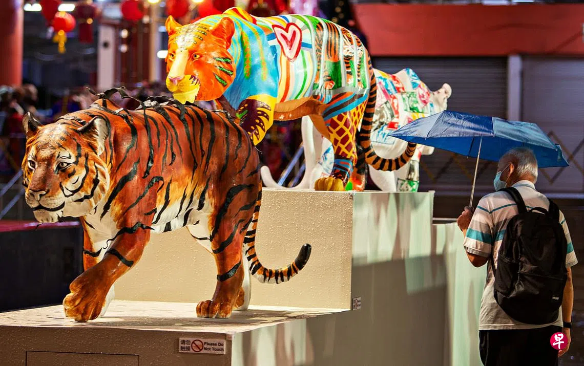 今年筹委会也首次与非盈利组织天猛公艺术基金会和世界自然基金会(新加坡)合作,在牛车水广场展出12尊老虎雕像,希望提高公众对野生老虎保育工作的认知。