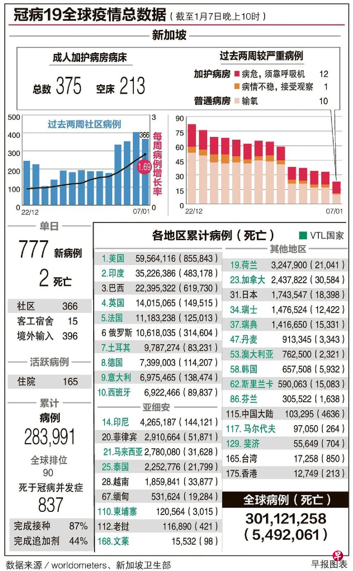 昨天新增的病例从前天的813起减少至777起,其中396起由境外输入,占病例的约51%。其余366起是社区病例,15起来自客工宿舍。