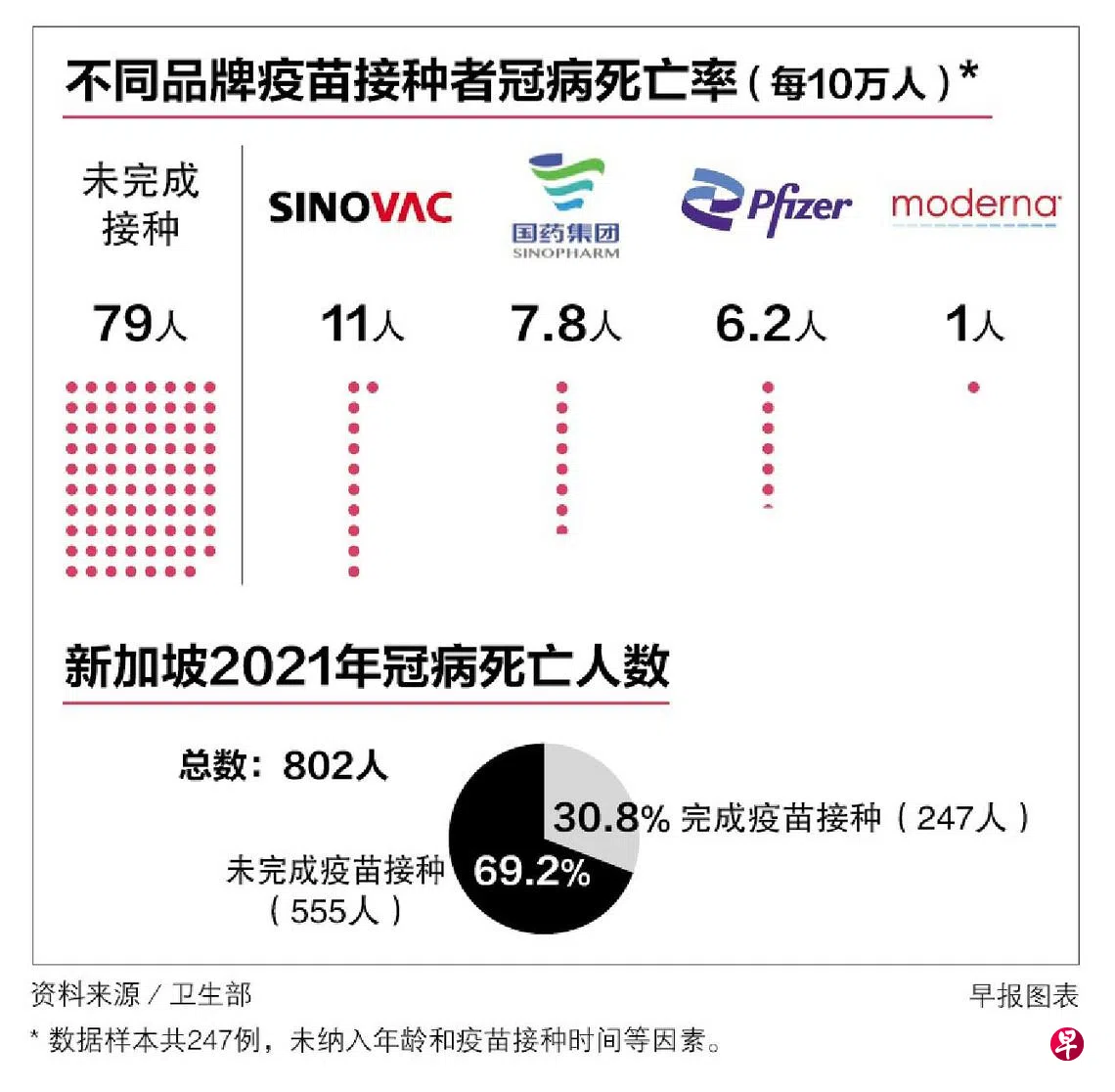 未完成接种冠病疫苗者仅占本地人口的一小部分,却占了去年冠病死亡病例的七成。我国去年有802人因冠病并发症逝世,其中555人未完成接种。