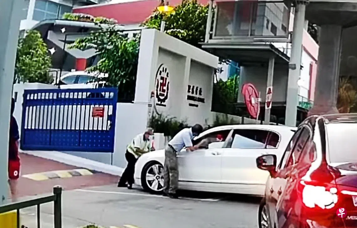 这起引发社会高度关注的事件发生在昨早7时许,位于勿洛北3道卍慈学校的正门前。一辆白色宾利名车疑要插队逆车道硬闯入校园时,被保安人员梁亚发及一名工作人员阻拦,但宾利司机数度持续前进,连撞梁亚发的腿部。