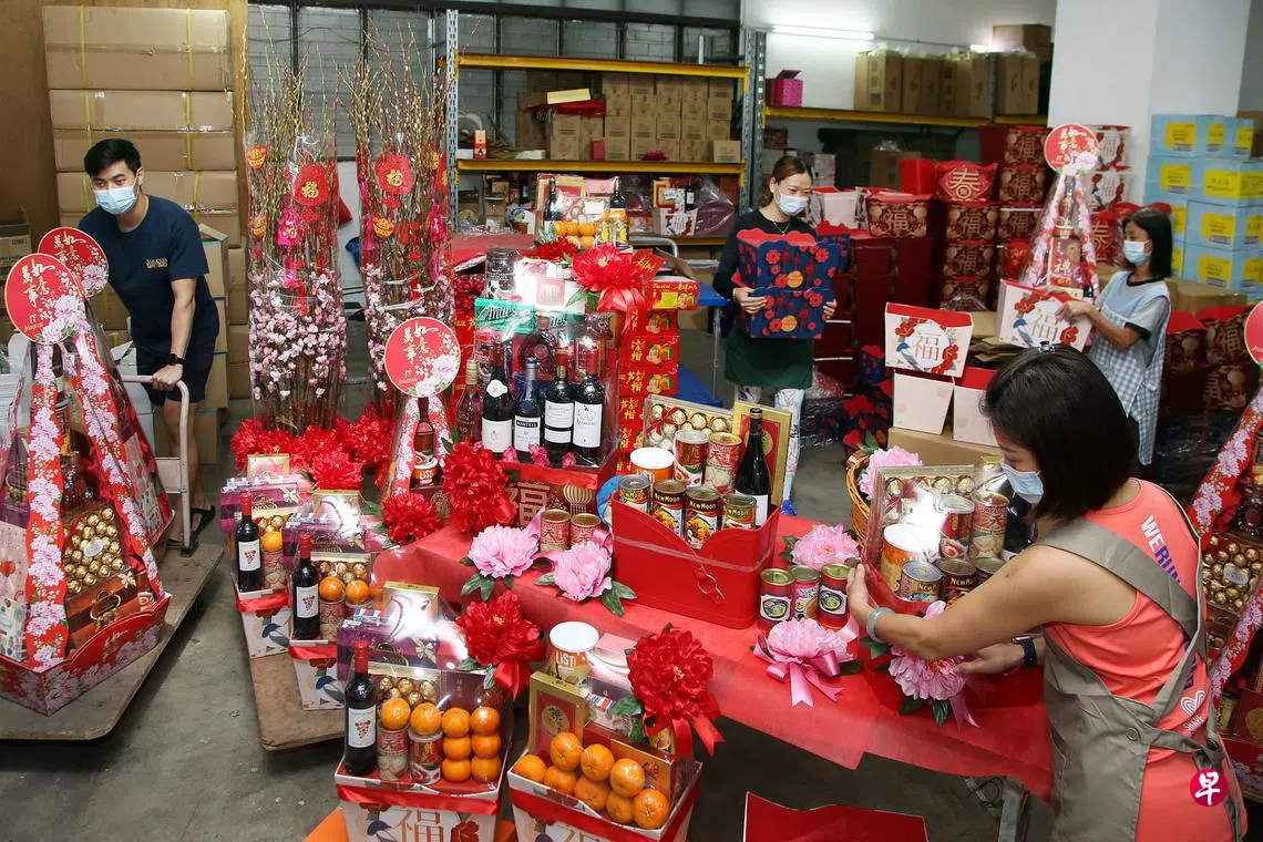 随着更多员工重返工作场所,今年农历新年礼篮的订单数量比去年增加了约10%,不过运输费和原材料成本增加,也推高了部分礼篮的价格。