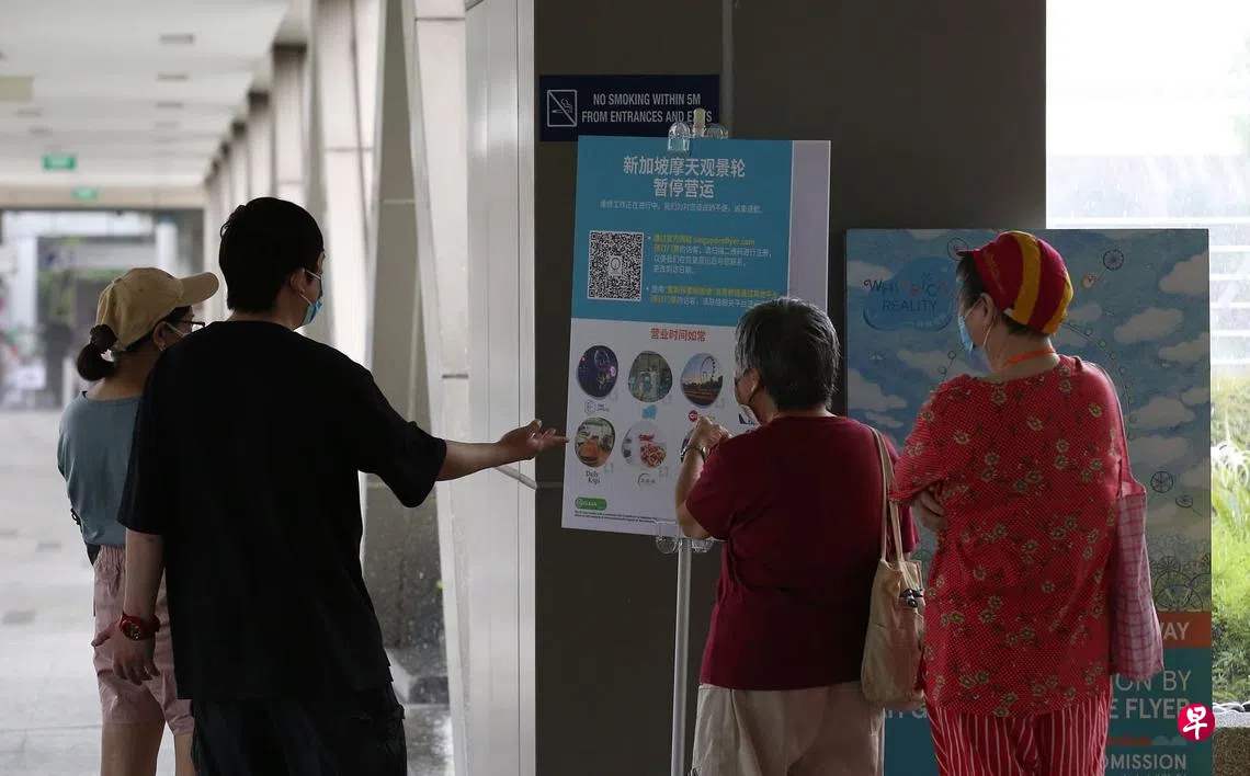新加坡摩天观景轮因技术问题前天(1月19日)起暂停运作,许多买了票的公众不知情,昨天到场要登轮才发现白跑一趟。