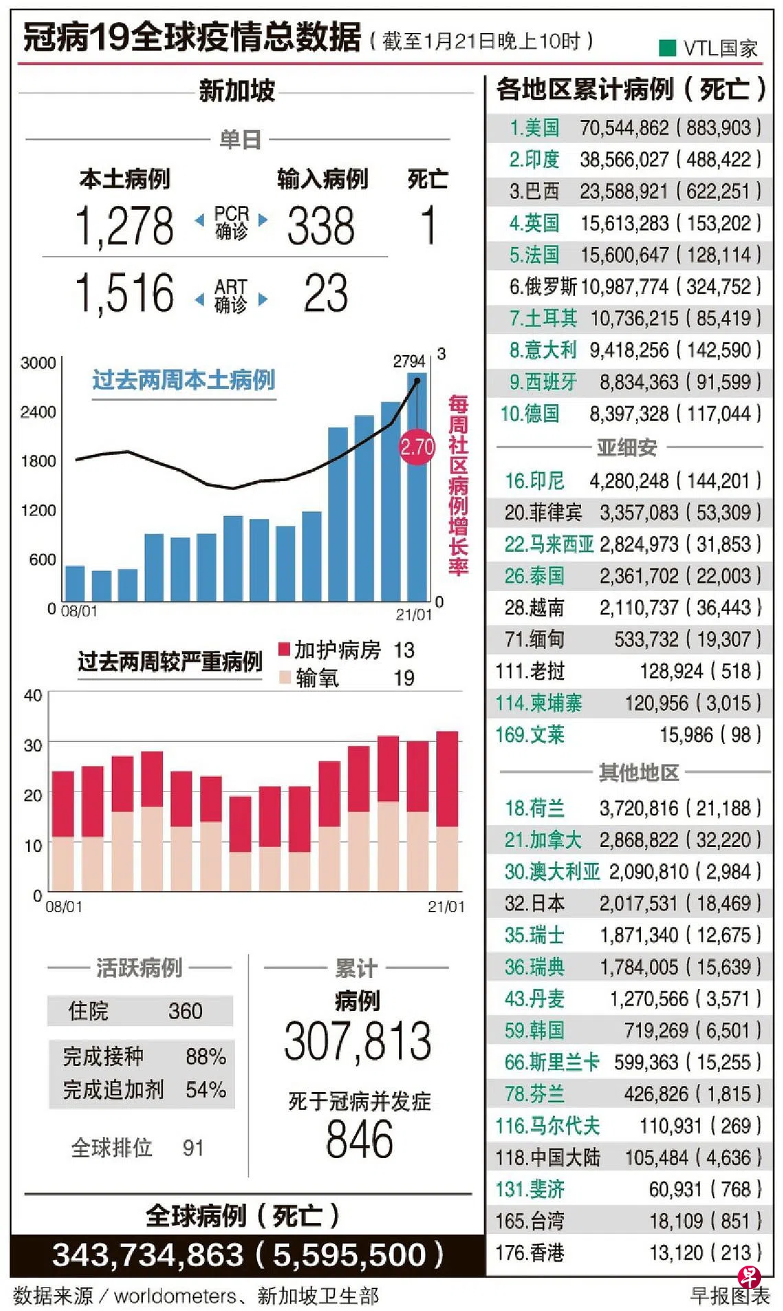 截至前天,全国人口中88%已完成基本疫苗接种程序,54%已注射追加剂。按符合接种条件的人口计算,加上已开始接种的五岁至11岁孩童,已有91%完成接种。