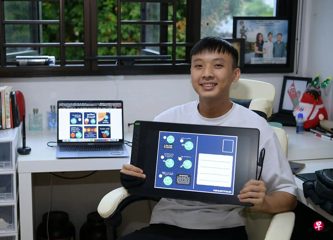 从小热爱天文学的蔡俊源(23岁)在社交媒体Instagram上创建了名为Spaceytales的页面,通过漫画传递天文知识。此举不但让他收获了一批粉丝,还受到美国国家航空航天局(NASA)的关注,这为他获得了绘制詹姆斯·韦伯太空望远镜(James Webb Space Telescope)电子明信片的机会。