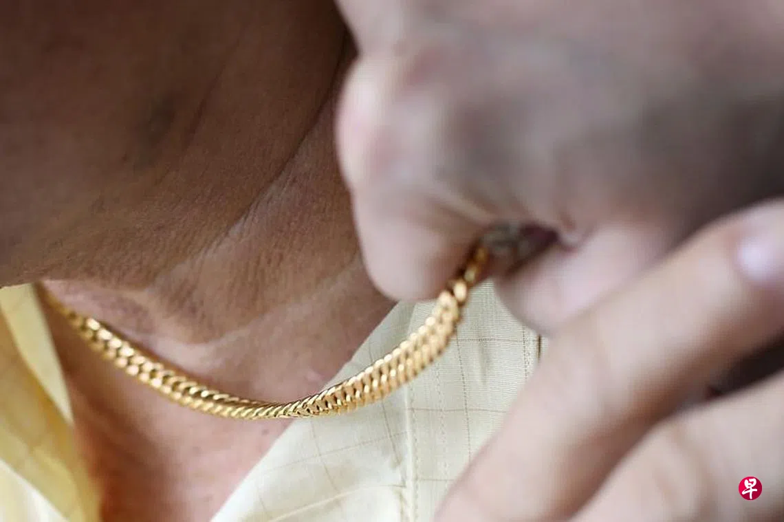 “当我第二次重复他找错地方时,对方已将手放在铁门边,突然从铁门之间的空隙伸手过来,抢夺我戴在颈上的金链,之后从楼梯跑下。”