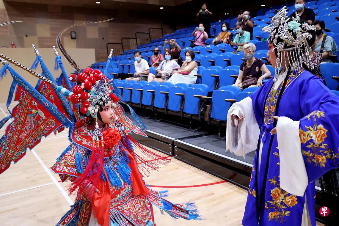 南华潮剧社与榜鹅民众俱乐部合作,前天将潮剧带入社区,为居民表演了《二堂放子》《刀马旦》《别窑》和《梅亭雪》四出剧目,吸引了数十位观众观看。