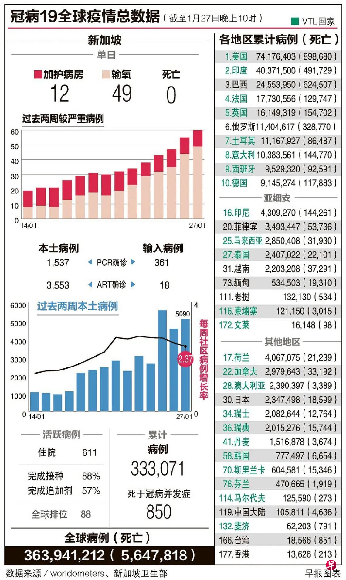 截至前天,全国人口中88%已完成基本疫苗接种程序,57%已注射追加剂。