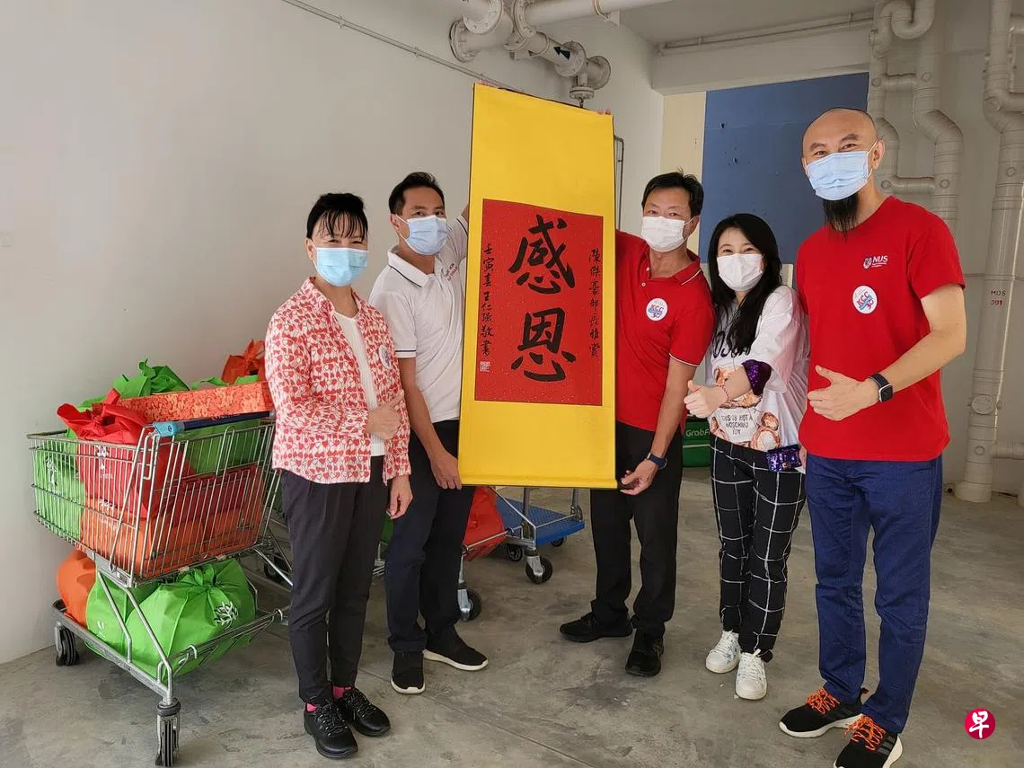 新加坡九龙会关怀送暖,在春节来临之际,拜访甘榜菜市租赁组屋,为居民派发礼包,送上新年祝福。