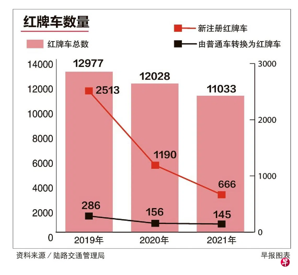 陆路交通管理局发布的最新数据显示,去年注册的红牌车数量仅666辆,比前年的1190辆少了近一半。这也是新注册红牌车数量连续第三年下跌。