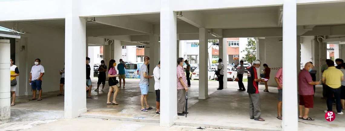 后港1道第106座的博彩投注站,昨天就出现长约100米的人龙,一直延伸到隔座组屋。