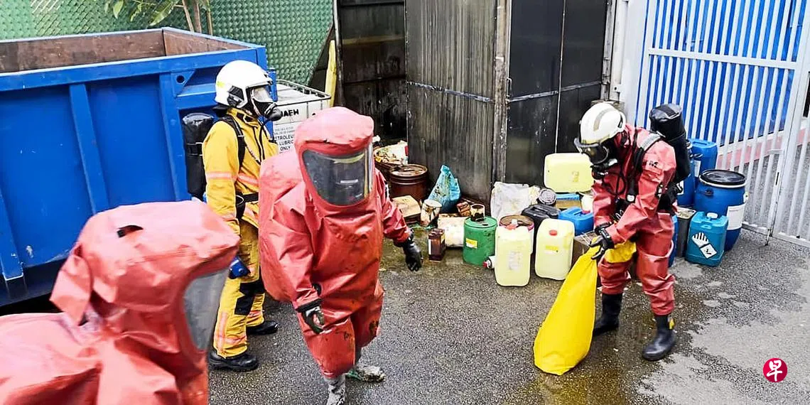 罗央通道厂房化学气体泄漏 七人自行疏散无人受伤订户赠阅文章身穿防护服的危险物质控制专员,进入废料储藏槽调查。(取自民防部队面簿)罗央通道工业区发生化学气体泄漏事故,七人自行疏散,无人在事故中受伤。这起事故发生在2月1日下午5时零5分,地点是罗央通道第51号。新加坡民防部队在面簿贴文中表示,当局人员抵达现场后,发现一个四乘二米、装有化学废料的储藏槽内有黄色烟雾冒出。上一篇国家图书馆正式推出儿童书籍订阅服务下一篇涉走私7186条漏税烟 六人被捕三辆车被扣购买此文章