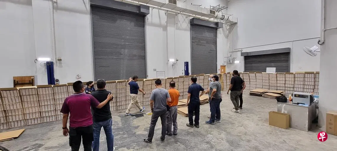 根据文告,执法人员事发当天到裕廊西62街一带暗中观察,发现两名男子从一辆卡车卸下一个个棕色箱子,搬上货车,不久后其中一人驾着货车离开,另一人则在不久后驾了一辆罗厘停在卡车旁,将棕色箱子从卡车搬到罗厘上。