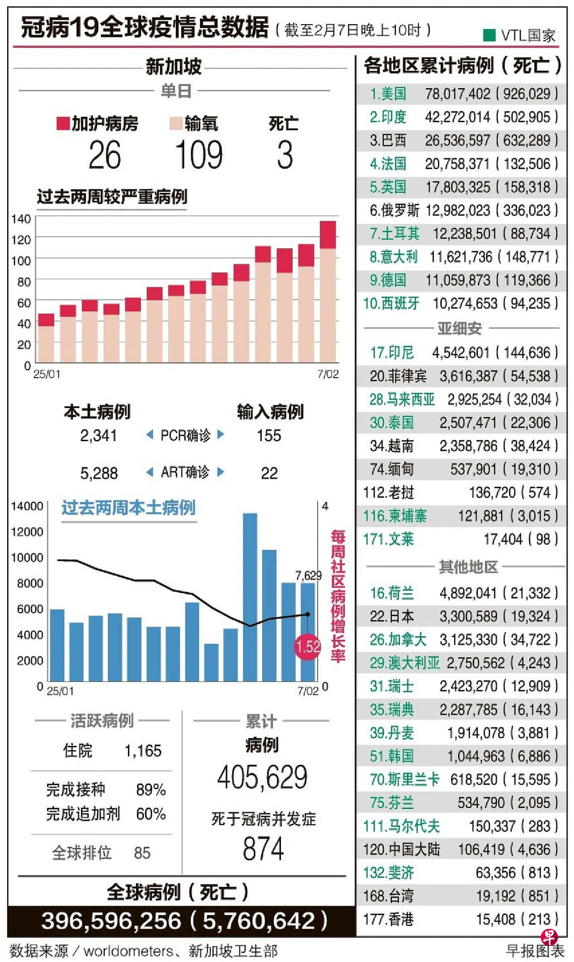 本地冠病病例累计超过40万起,截至昨天中午,有1165名病患因冠病住院,比前天多91人。其中109人需要输氧,26人在加护病房治疗。